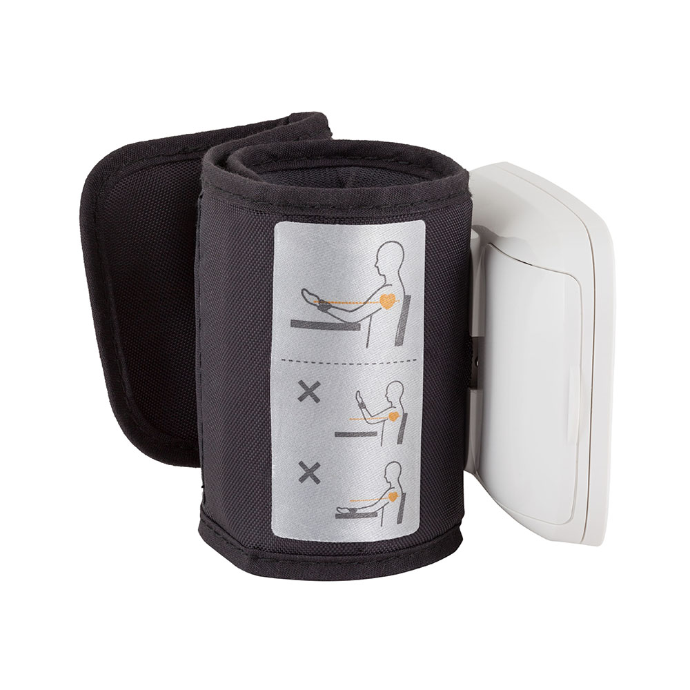 Необходимо занять правильную позу — сидя, с ровной спиной. Стопы полностью должны касаться пола. Рука с закрепленным тонометром должна быть согнута в локте так, чтобы прибор находился на уровне сердца. При этом нельзя поддерживать локоть второй рукой. Запястье с манжетой следует держать ровно, не отклоняя кисть назад или вперед, и не сжимая ее в кулак.