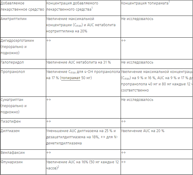 Для оценки потенциально возможных вариантов лекарственного взаимодействия между топираматом и другими лекарственными препаратами был проведен ряд клинических исследований.