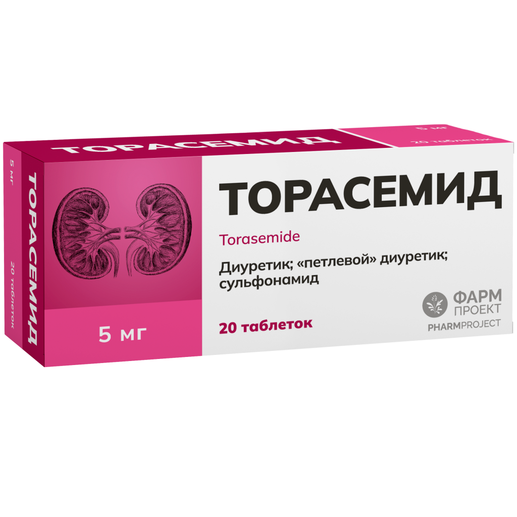 Действующее вещество: торасемид - 5 мг.