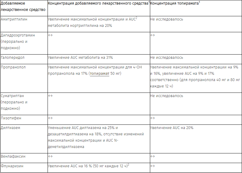 Дополнительные исследования лекарственного взаимодействия: для оценки потенциально возможных вариантов лекарственного взаимодействия между топираматом и другими лекарственными препаратами был проведен ряд клинических исследований.