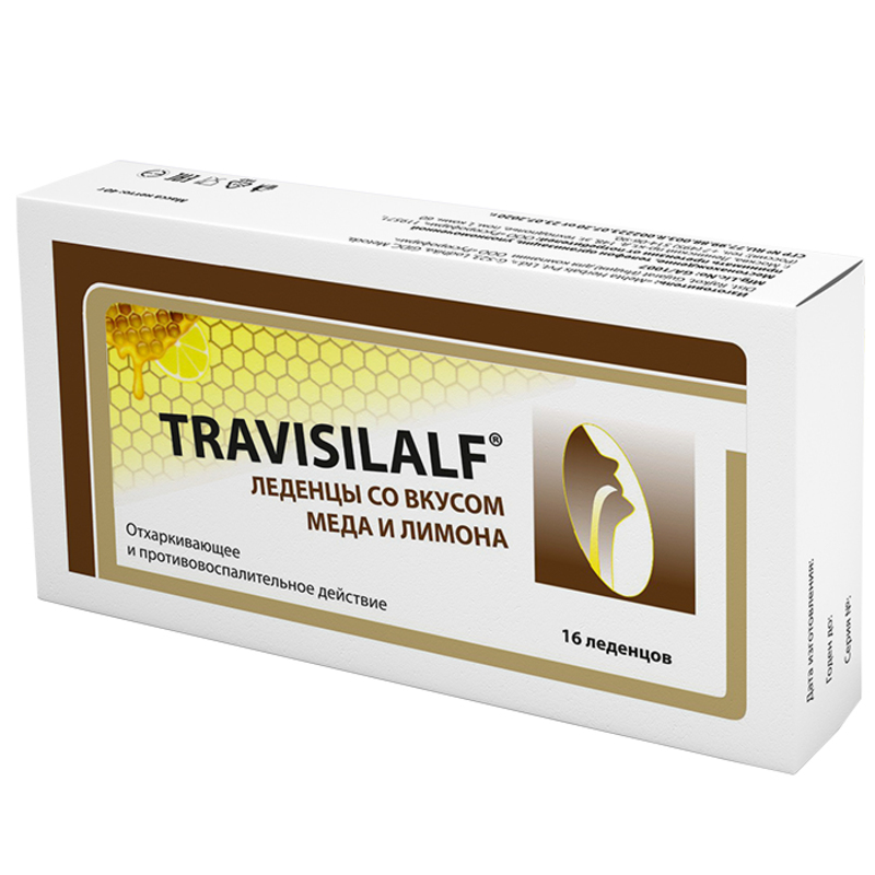 БАД к пище «Леденцы со вкусом меда и лимона» торговой марки «TRAVISILALF®» оказывает противовоспалительное действие на воспаленное горло и верхние дыхательные пути, обладает отхаркивающим действием при кашле (в.т.ч при «кашле курильщика»).