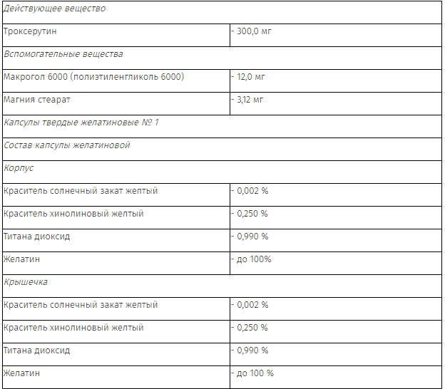 Троксерутин неэффективен при отеках, вызванных сопутствующими заболеваниями печени, почек и сердца.
