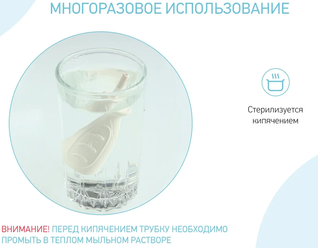 - После использования тщательно промойте трубку в мыльном растворе. Прокипятите в дистиллированной воде в течение 30 мин. Перед повторным применением изделие следует стерилизовать.