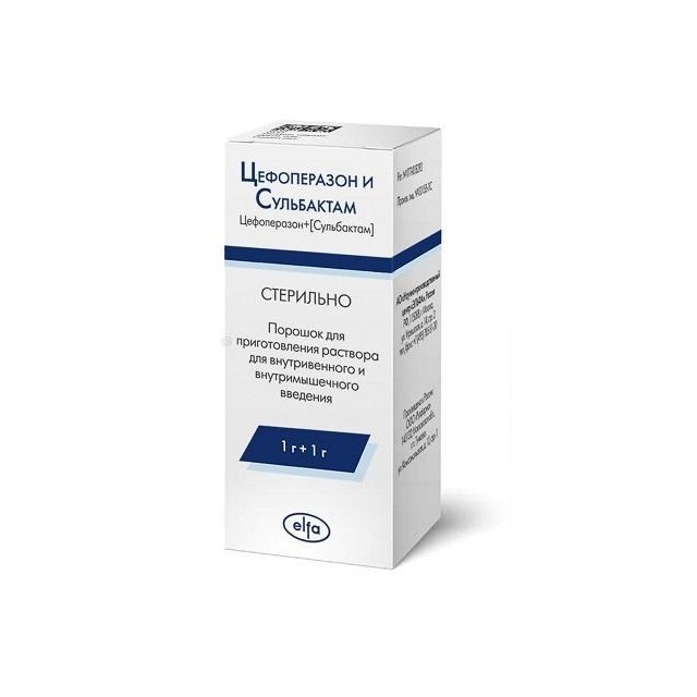 Действующие вещества: Цефоперазон натрия 1036,0 мг (в пересчете на цефоперазон) 1000,0 мг. Сульбактам натрия 1099,0 мг (в пересчете на сульбактам) 1000,0 мг.