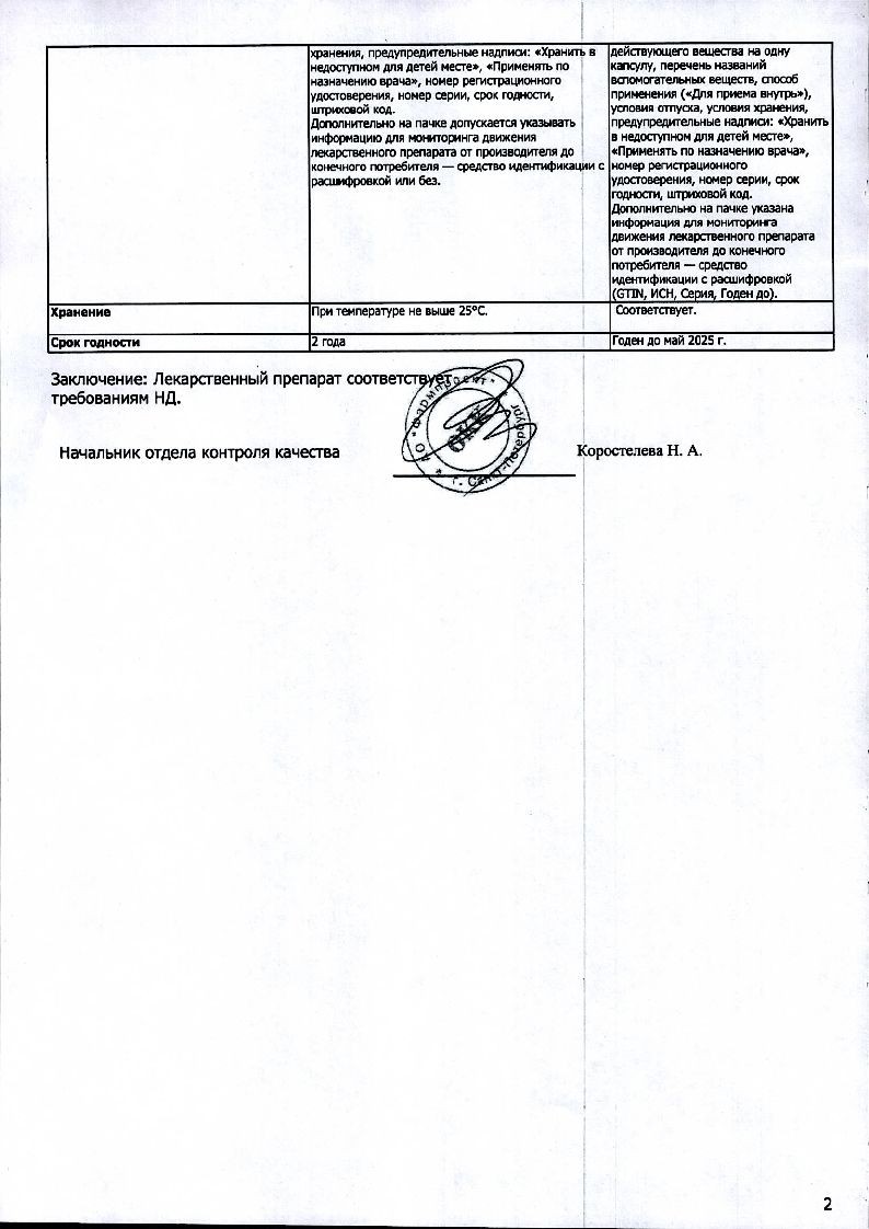Состав капсулы № 1: желатин, титана диоксид [Е 171].