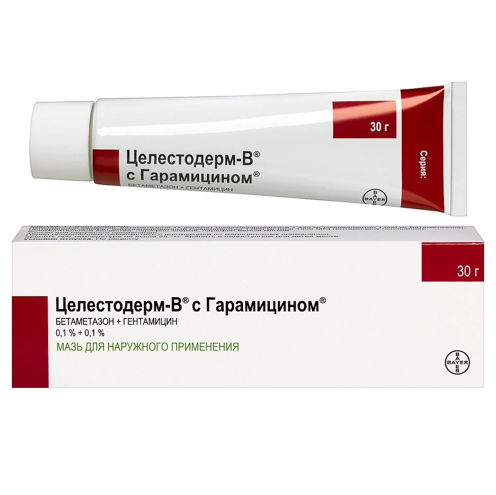 Активные вещества: бетаметазона валерат (в эквиваленте 1 мг бетаметазона) - 1.22 мг, гентамицин (в форме сульфата) - 1 мг (1000 МЕ).