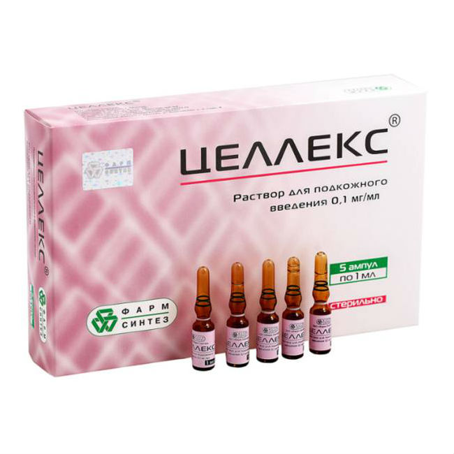 Активное вещество: целлекс® субстанция-раствор (замороженный, в пересчете на белок*) 0.1 мг