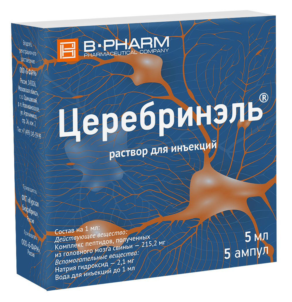 Препарат Церебринэль® содержит низкомолекулярные биологически активные нейропептиды, которые проникают через гематоэнцефалический барьер и непосредственно поступают к нервным клеткам.