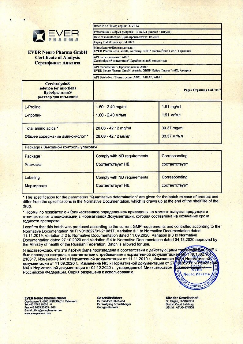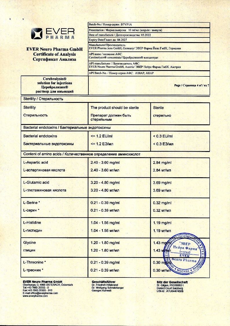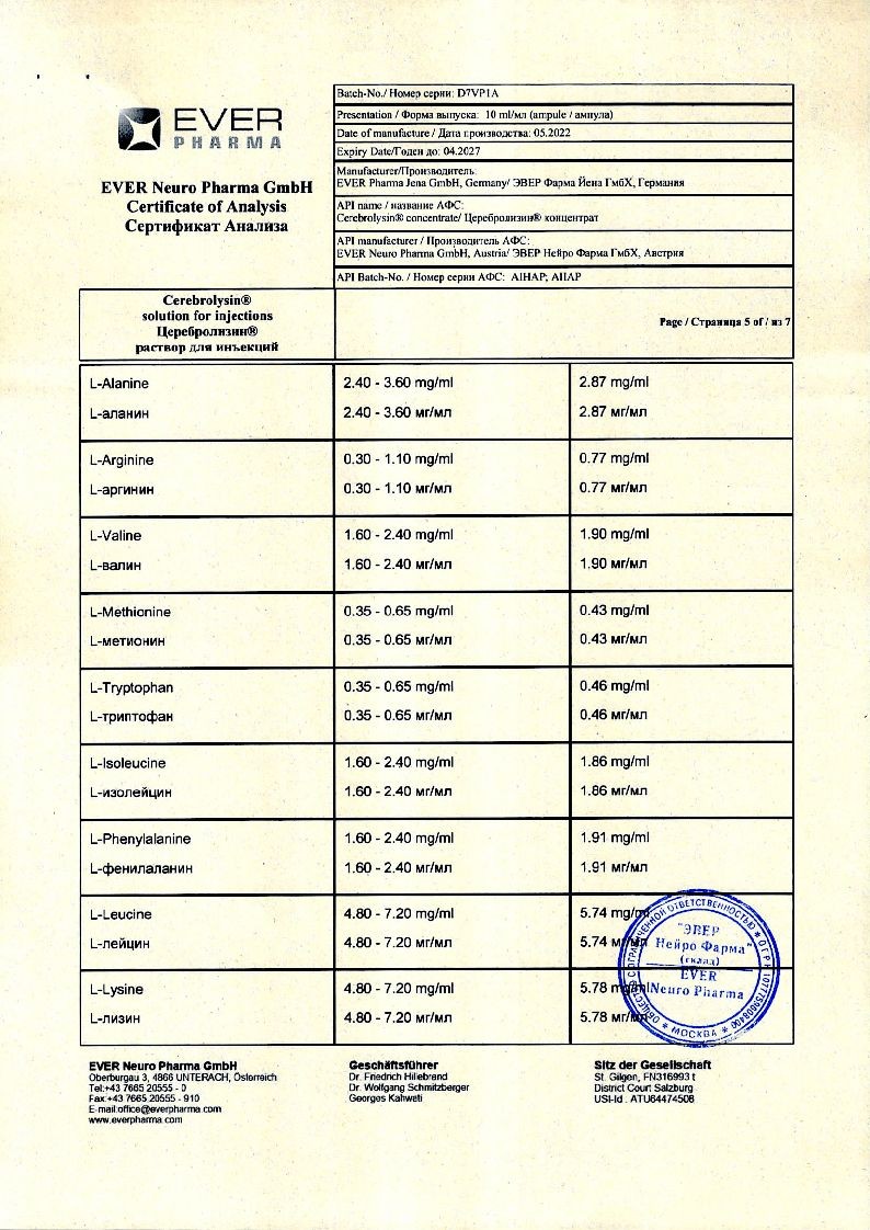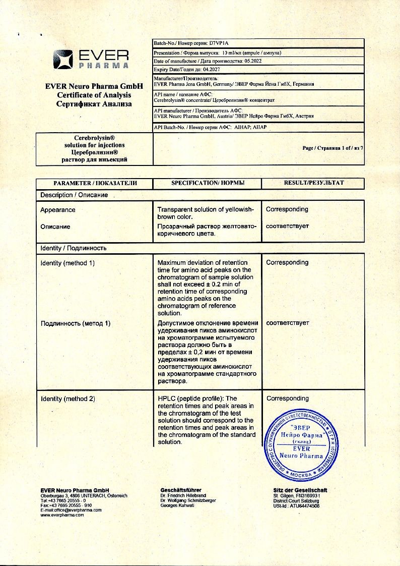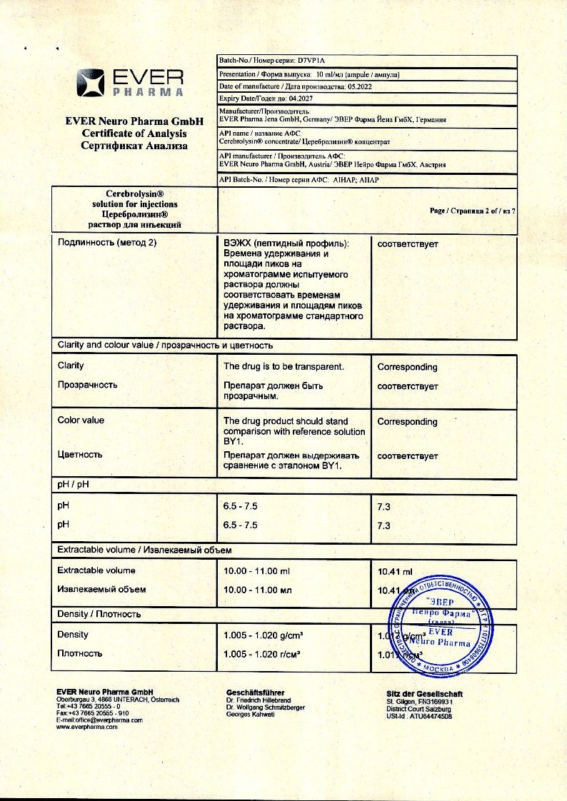 Церебролизин® содержит низкомолекулярные биологически активные нейропептиды, которые проникают через ГЭБ и непосредственно поступают к нервным клеткам. Препарат обладает органоспецифическим мультимодальным действием на головной мозг, т.е. обеспечивает метаболическую регуляцию, нейропротекцию, функциональную нейромодуляцию и нейротрофическую активность.
