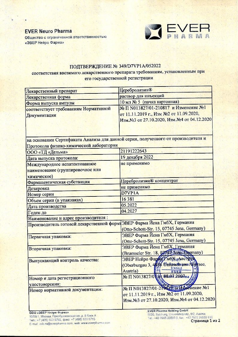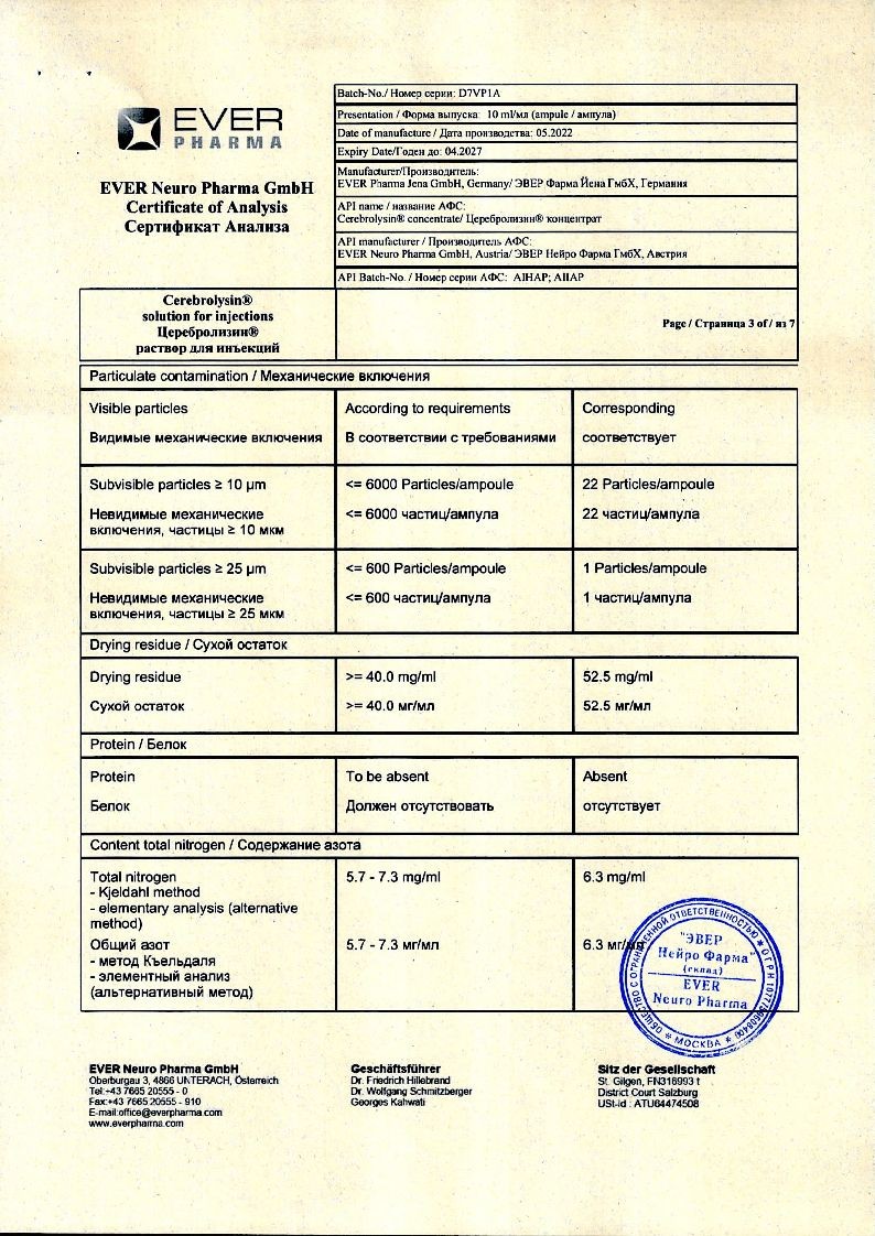 Следует использовать только прозрачный раствор Церебролизина и только однократно.
