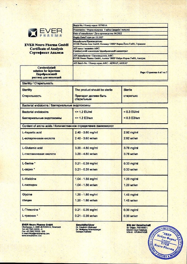Следует использовать только прозрачный раствор Церебролизина и только однократно.