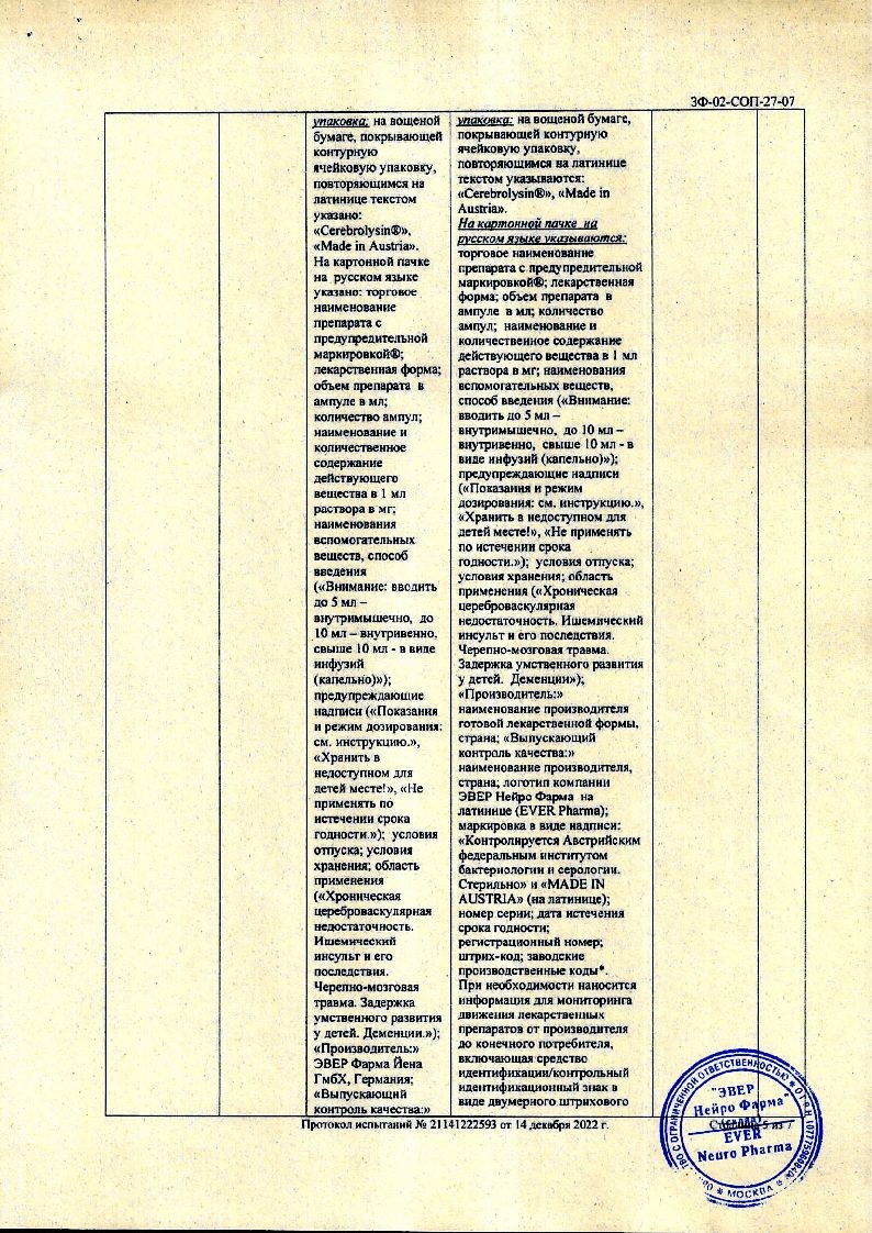 Следует учесть, что некоторые нежелательные эффекты (возбуждение, артериальная гипертензия, артериальная гипотензия, вялость, тремор, депрессия, апатия, головокружение, головная боль, одышка, диарея, тошнота) были выявлены в ходе клинических исследований и возникали в равной мере как у пациентов, получавших Церебролизин®, так и у пациентов группы плацебо.