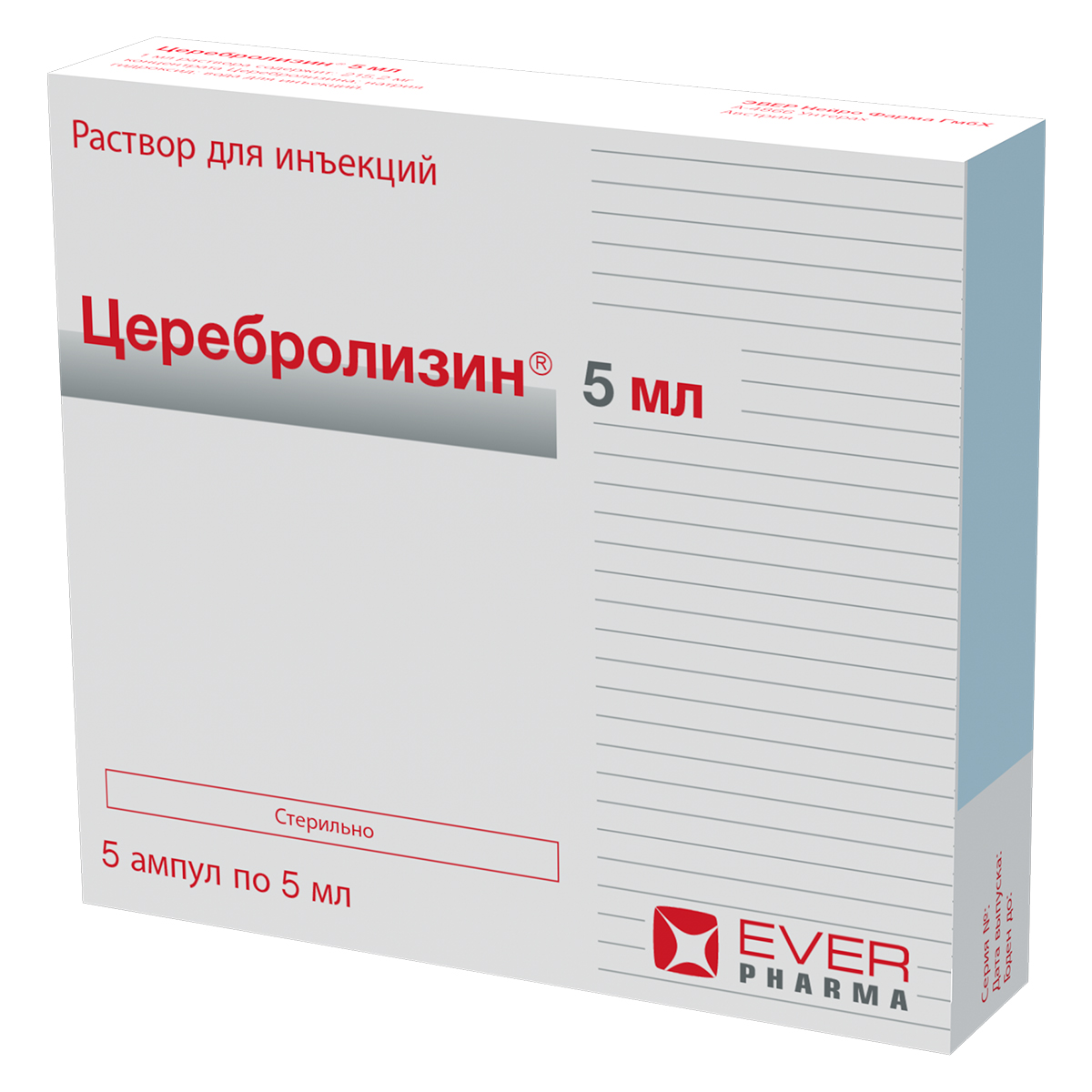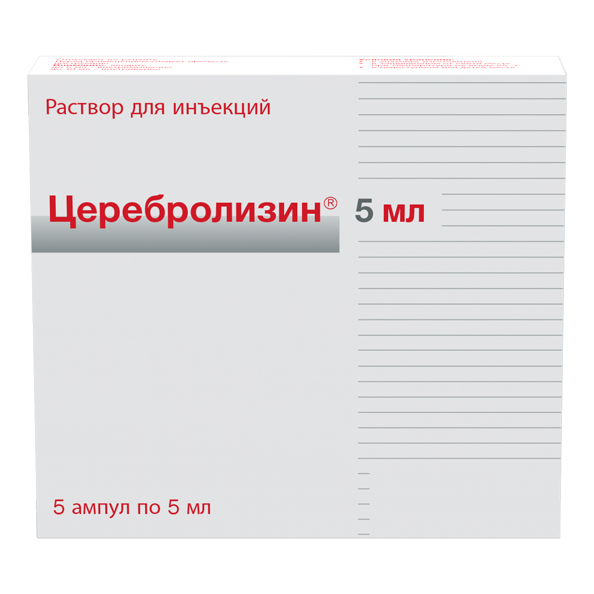 Активное вещество: концентрат церебролизина (комплекс пептидов, полученных из головного мозга свиньи) 215,2 мг.