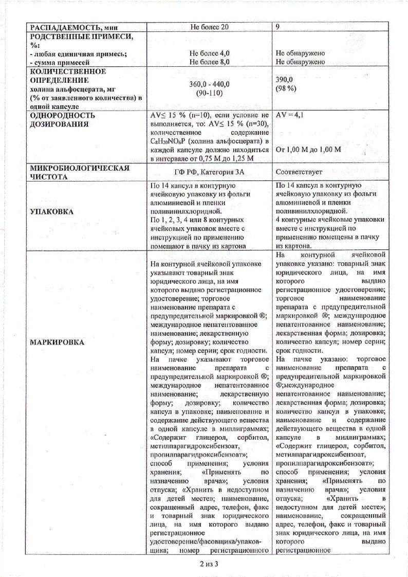 Активное вещество: холина альфосцерат 400 мг.