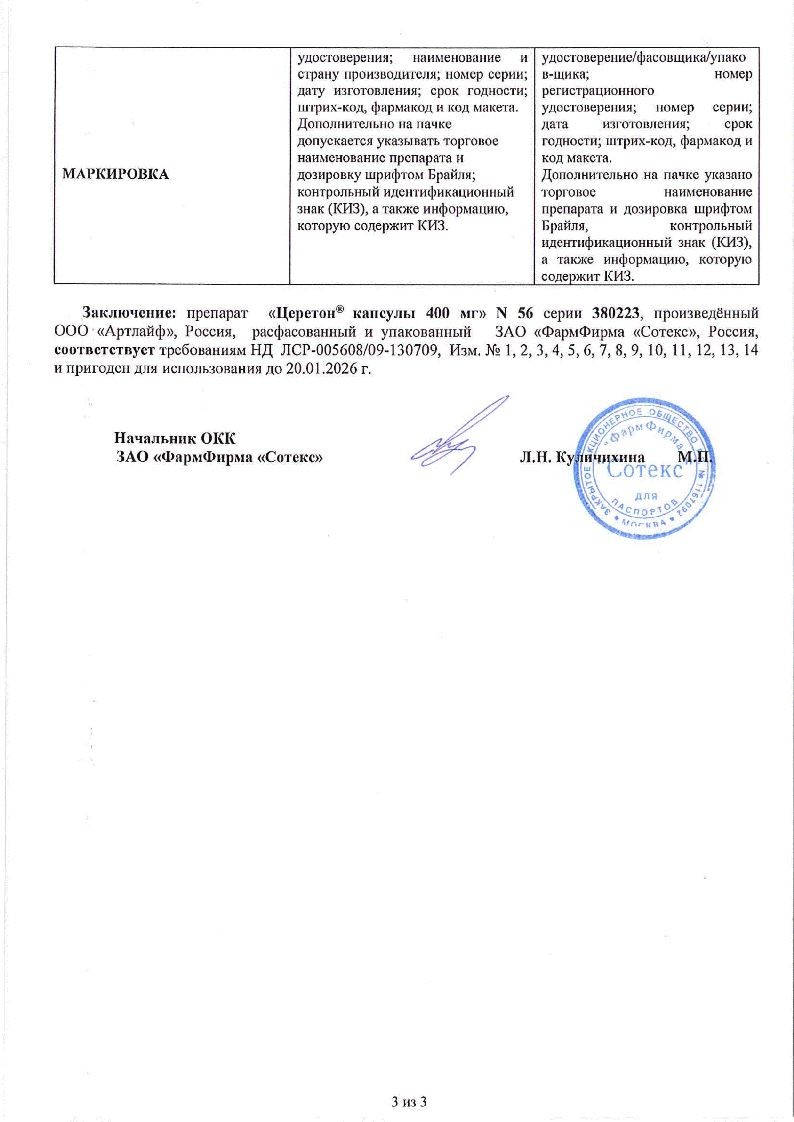 Фармакодинамические исследования показали, что Церетон® действует на синаптическую, в том числе холинергическую передачу нервного импульса (нейротрансмиссию), пластичность нейронной мембраны и функцию рецепторов.