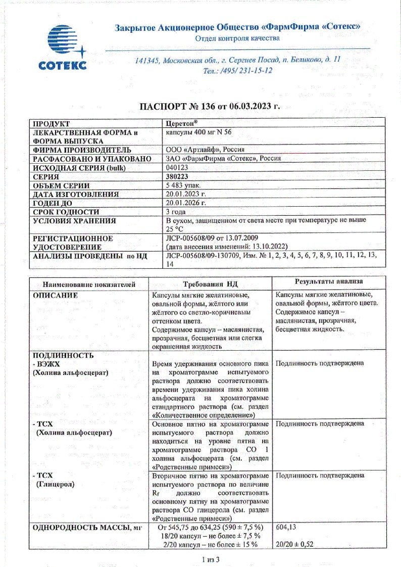 Церетон® - холина альфосцерат, который является холиномиметиком центрального действия с преимущественным влиянием на центральную нервную систему.