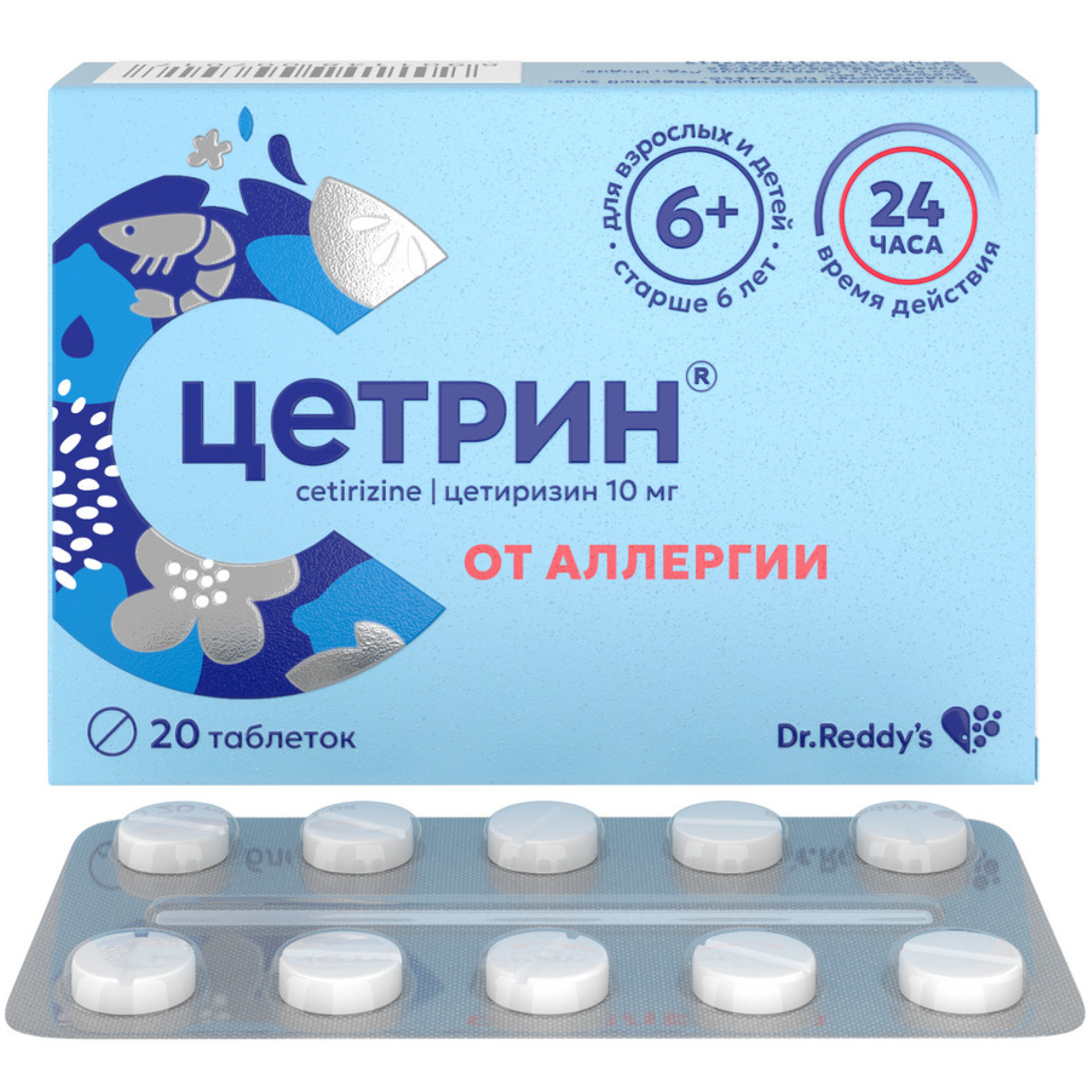 Активное вещество: цетиризина дигидрохлорид 10 мг.