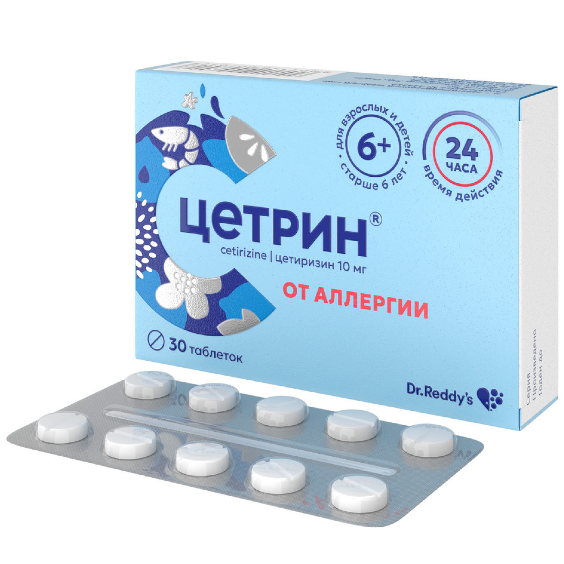 Активное вещество: цетиризина дигидрохлорид 10 мг.