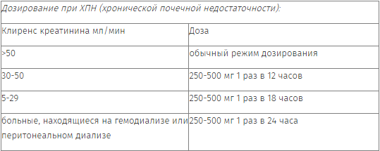 Пациентам с выраженными нарушениями функции почек следует назначать половинную дозу препарата.