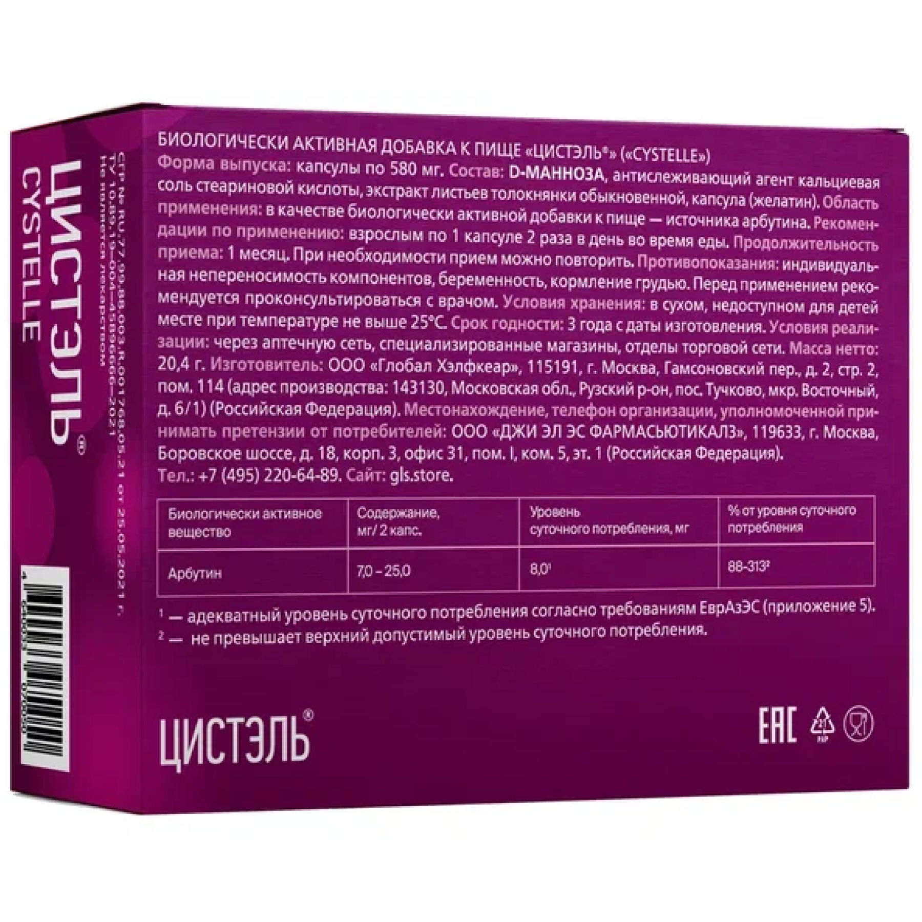 Капсулы - 1 капс.: D-манноза, экстракт листьев толокнянки обыкновенной, микрокристаллическая целлюлоза, желатин (оболочка капсулы).