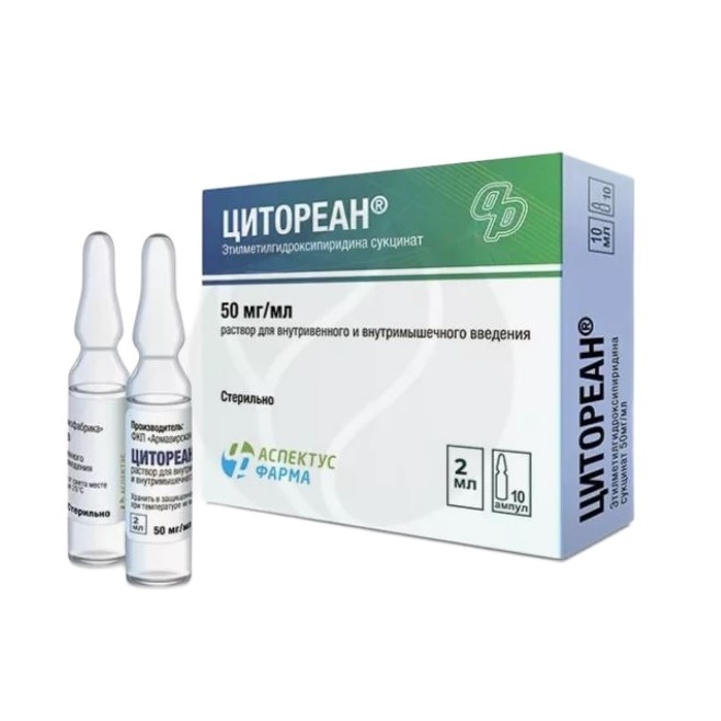 Внутримышечно (в/м) или внутривенно (в/в) (струйно или капельно). При инфузионном способе введения препарат следует разводить в 0,9 % растворе натрия хлорида. Струйно ЦИТОРЕАН® вводят медленно в течение 5-7 мин, капельно - со скоростью 40-60 капель в минуту. Максимальная суточная доза не должна превышать 1200 мг. При острых нарушениях мозгового кровообращения ЦИТОРЕАН® применяют в первые 10-14 дней - в/в капельно по 200-500 мг 2-4 раза в сутки, затем в/м по 200-250 мг 2-3 раза в сутки в течение 2 недель. При черепно-мозговой травме и последствиях черепно-мозговых травм ЦИТОРЕАН® применяют в течение 10-15 дней в/в капельно по 200-500 мг 2-4 раза в сутки. При дисциркуляторной энцефалопатии в фазе декомпенсации ЦИТОРЕАН® следует назначать в/в струйно или капельно в дозе 200-500 мг 1-2 раза в сутки на протяжении 14 дней. Затем в/м по 100-250 мг/сут на протяжении последующих 2 нед. Для курсовой профилактики дисциркуляторной энцефалопатии препарат вводят в/м в дозе 200-250 мг 2 раза в сутки на протяжении 10-14 дней. При лёгких когнитивных нарушениях у больных пожилого возраста и при тревожных расстройствах препарат применяют в/м в суточной дозе 100-300 мг/сут на протяжении 14-30 дней. При остром инфаркте миокарда в составе комплексной терапии ЦИТОРЕАН® вводят внутривенно или внутримышечно в течение 14 суток, на фоне традиционной терапии инфаркта миокарда, включающей нитраты, бета-адреноблокаторы, ингибиторы ангиотензинпревращающего фермента (АПФ), тромболитики, антикоагулянтные и антиагрегантные средства, а также симптоматические средства по показаниям. В первые 5 суток, для достижения максимального эффекта, препарат желательно вводить внутривенно, в последующие 9 суток ЦИТОРЕАН® может вводиться внутримышечно. Внутривенное введение препарата производят путем капельной инфузии, медленно (во избежание побочных эффектов) на 0,9 % растворе натрия хлорида или 5 % растворе декстрозы (глюкозы) в объеме 100-150 мл в течение 30-90 мин. При необходимости возможно медленное струйное введение препарата, продолжительностью не менее 5 минут. Введение препарата (внутривенное или внутримышечное) осуществляют 3 раза в сутки, через каждые 8 часов. Суточная терапевтическая доза составляет 6-9 мг/кг массы тела в сутки, разовая доза - 2-3 мг/кг массы тела. Максимальная суточная доза не должна превышать 800 мг, разовая - 250 мг. При открытоугольной глаукоме различных стадий в составе комплексной терапии ЦИТОРЕАН® вводят внутримышечно по 100-300 мг/сутки, 1-3 раза в сутки в течение 14 дней. При абстинентном алкогольном синдроме ЦИТОРЕАН® вводят в дозе 200-500 мг в/в капельно или в/м 2-3 раза в сутки в течение 5-7 дней. При острой интоксикации антипсихотическими средствами препарат вводят в/в в дозе 200-500 мг/сут на протяжении 7-14 дней. При острых гнойно-воспалительных процессах брюшной полости (острый некротический панкреатит, перитонит) препарат назначают в первые сутки как в предоперационном, так и в послеоперационном периоде. Вводимые дозы зависят от формы и тяжести заболевания, распространенности процесса, вариантов клинического течения. Отмена препарата должна производиться постепенно только после устойчивого положительного клинико-лабораторного эффекта. При остром отечном (интерстициальном) панкреатите ЦИТОРЕАН® назначают по 200-500 мг 3 раза в день в/в капельно (в 0,9 % растворе натрия хлорида) и в/м. Легкая степень тяжести некрот