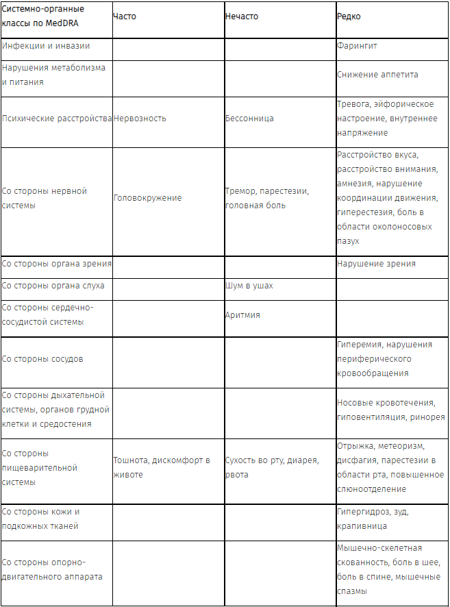Частота нежелательных лекарственных реакций классифицирована в соответствии с рекомендациями Всемирной организации здравоохранения.