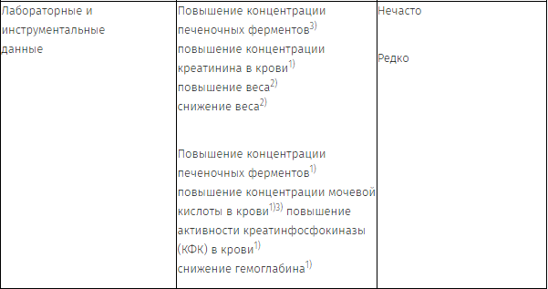 Внутри системно-органных классов по частоте возникновения нежелательных реакций используются следующие категории: очень часто (≥ 1/10); часто (≥ 1/100, < 1/10); нечасто (≥1/1000, < 1/100); редко