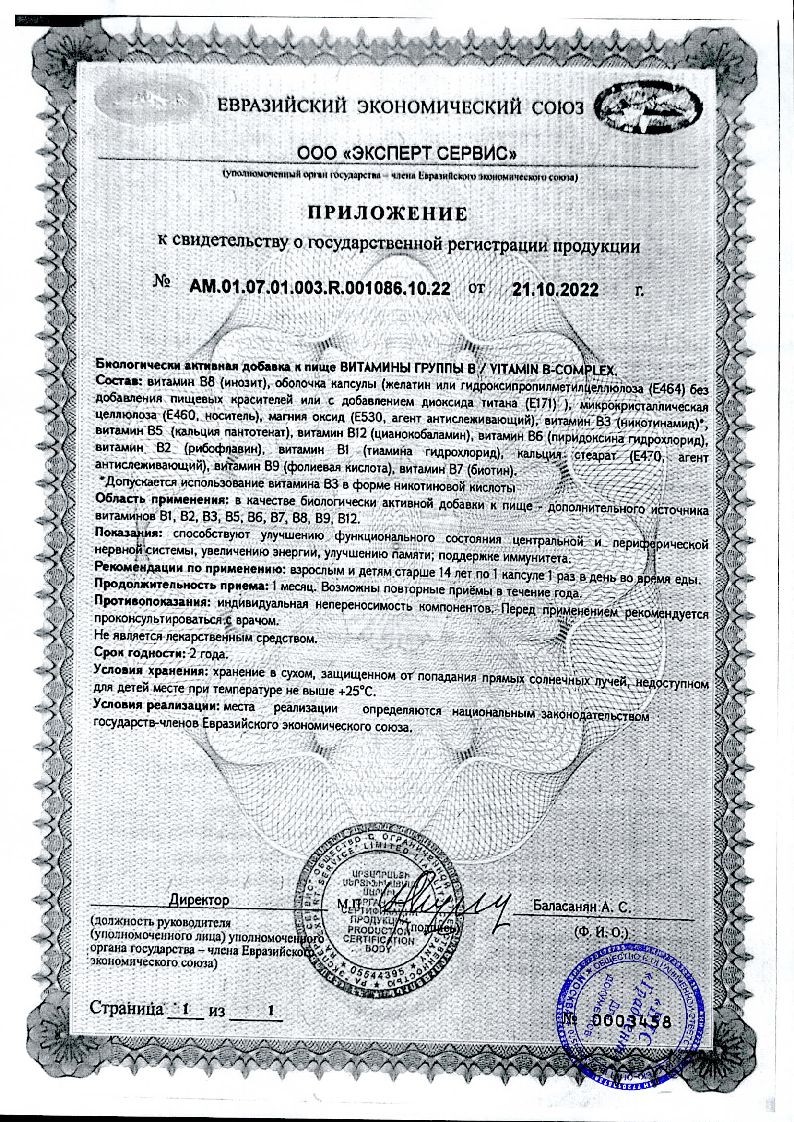 | Биологически активное вещество (БАВ) | Содержание в 1 капсуле (мг) | % от уровня суточного потребления |