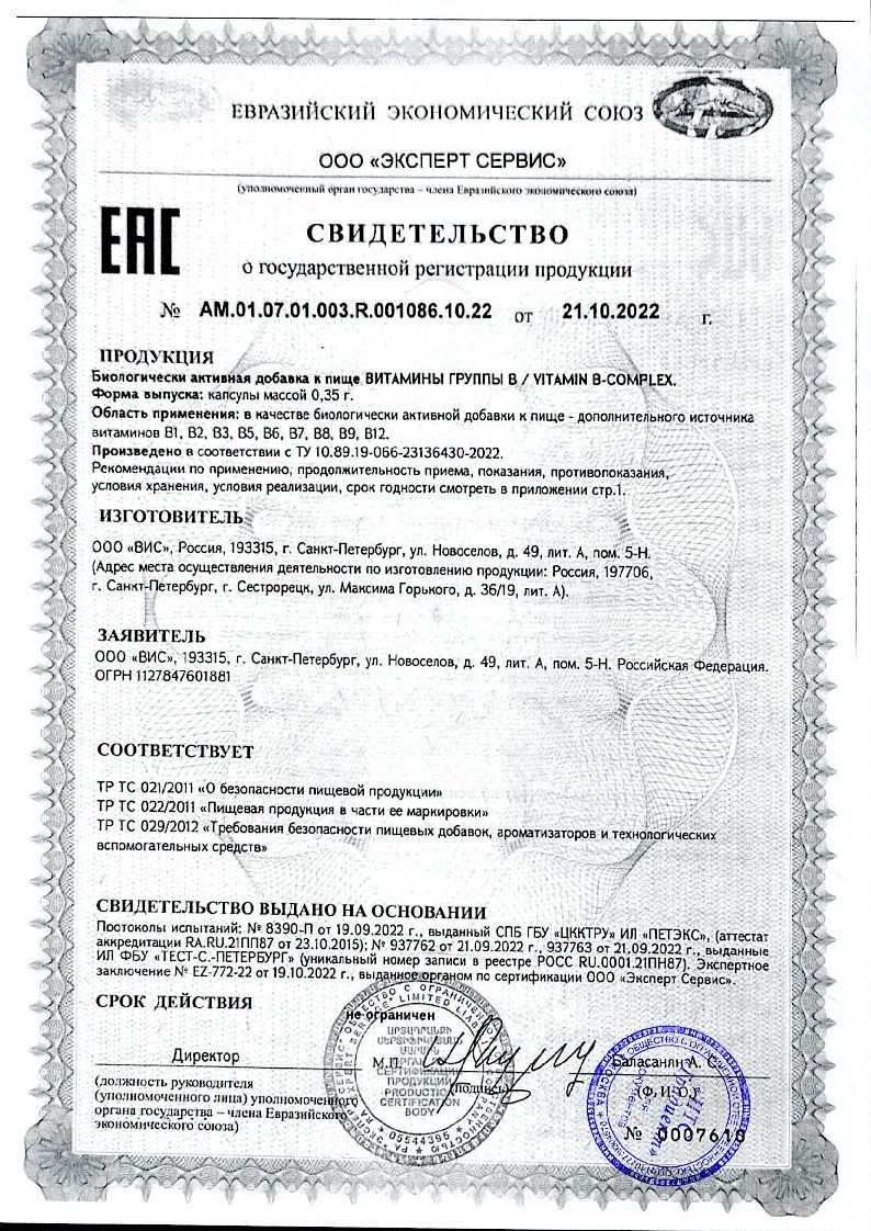 | Витамин B12 | 0,008 | 800 |