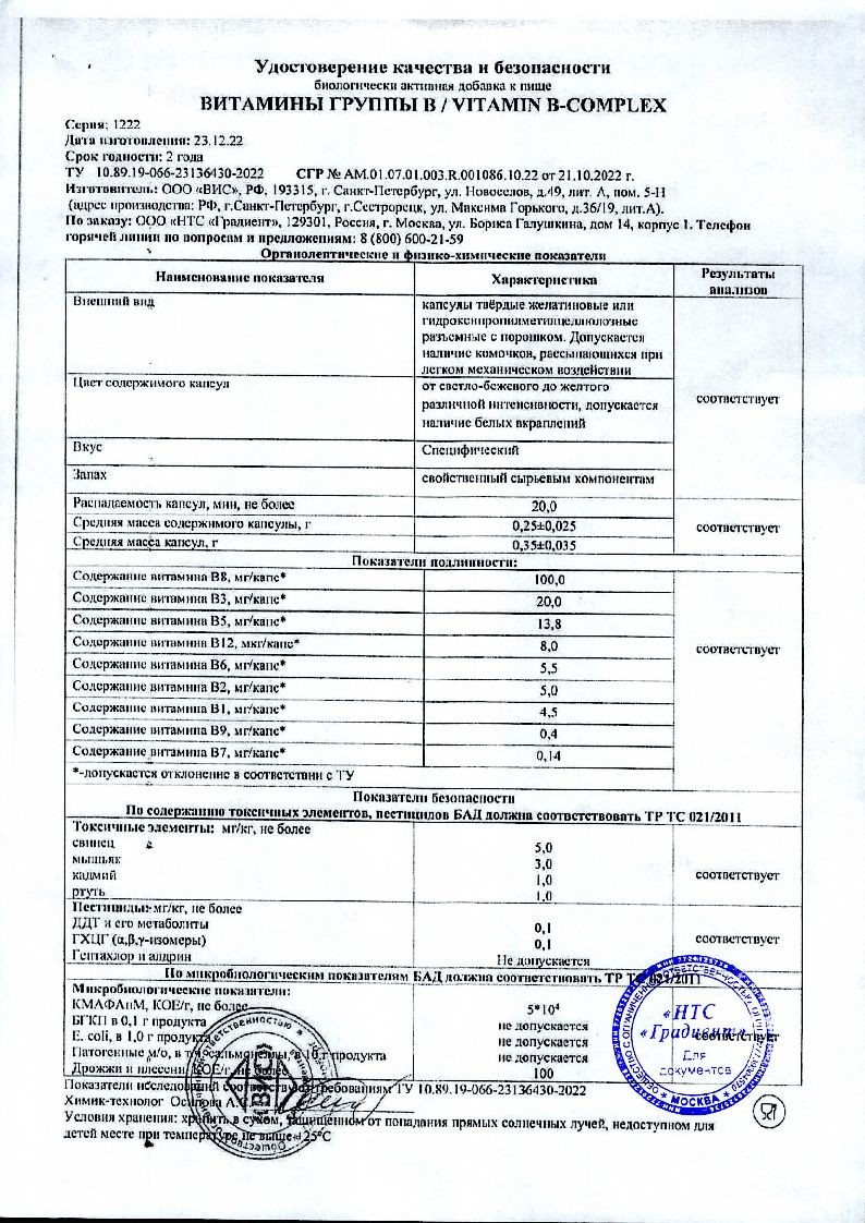 | Биологически активное вещество (БАВ) | Содержание в 1 капсуле (мг) | % от уровня суточного потребления |