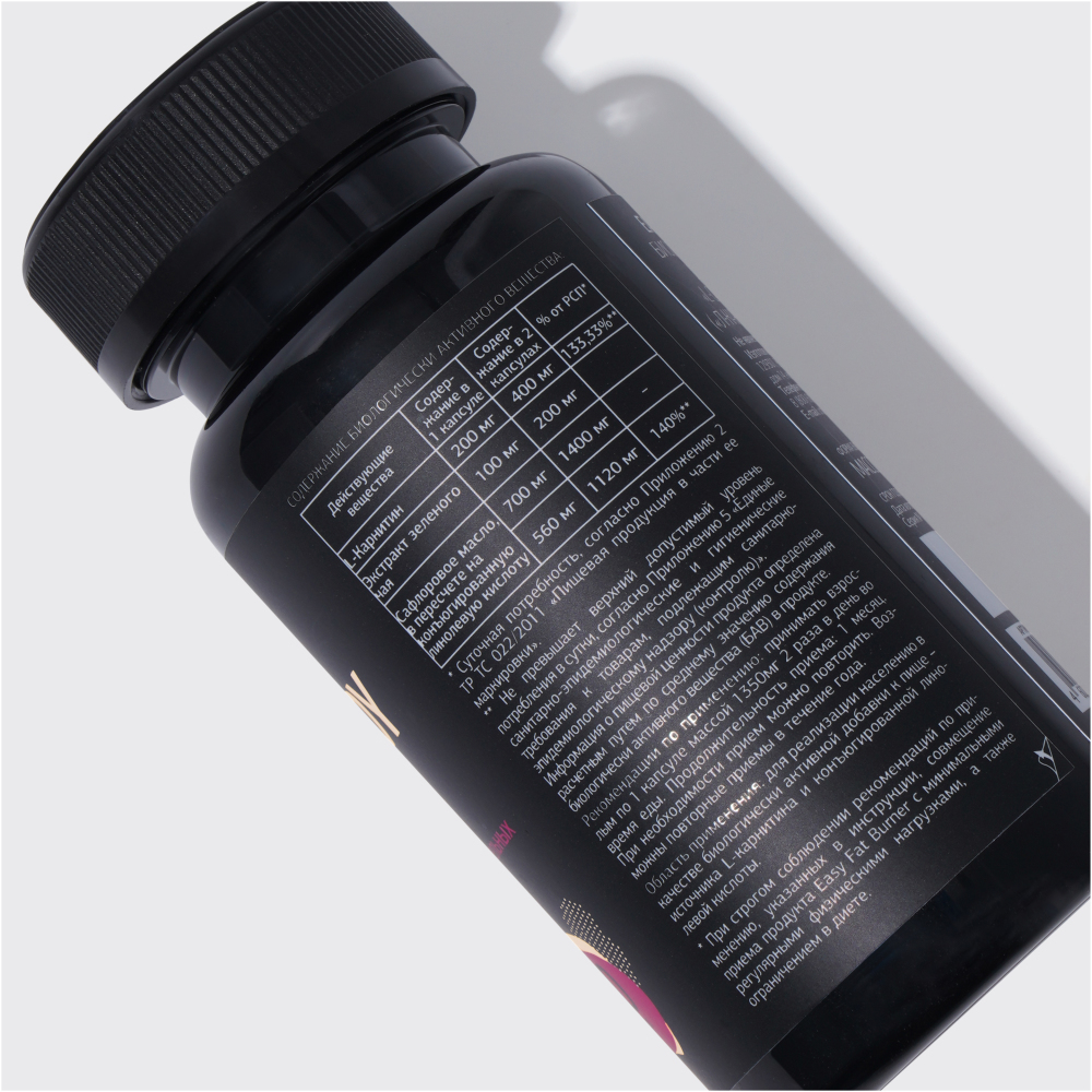 Easy Fat Burner от Urban Formula — комплекс для тех, кто хочет похудеть без физических нагрузок. В его составе 3 самых эффективных компонента, стимулирующих сжигание жира: CLA (конъюгированная линолевая кислота), L-карнитин, экстракт зеленого чая. Прием комплекса помогает преобразовывать жир в энергию и наращивать мышечную массу, ускоряет метаболизм, помогая организму тратить больше калорий даже без тренировок. Easy Fat Burner — биодобавка из серии эффективных современных комплексов Super Body для похудения и создания идеального тела.
