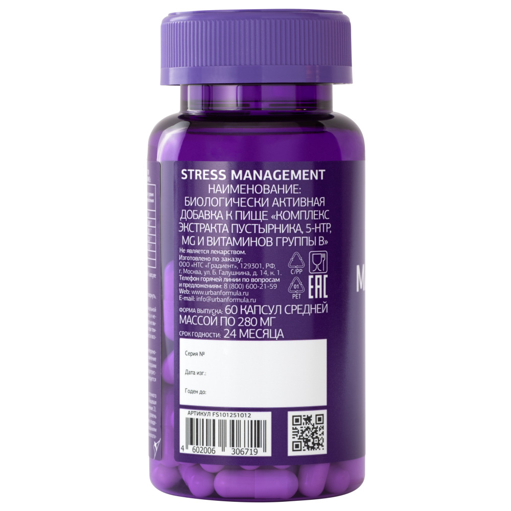 Биологически активная добавка к пище Urban Formula Stress Management рекомендуется в качестве дополнительного источника витамина: В1, В2, В6, В12 и магния, содержащей 5-гидрокситриптофан и иридоиды. Помощь организму при стрессах и эмоциональных нагрузках.