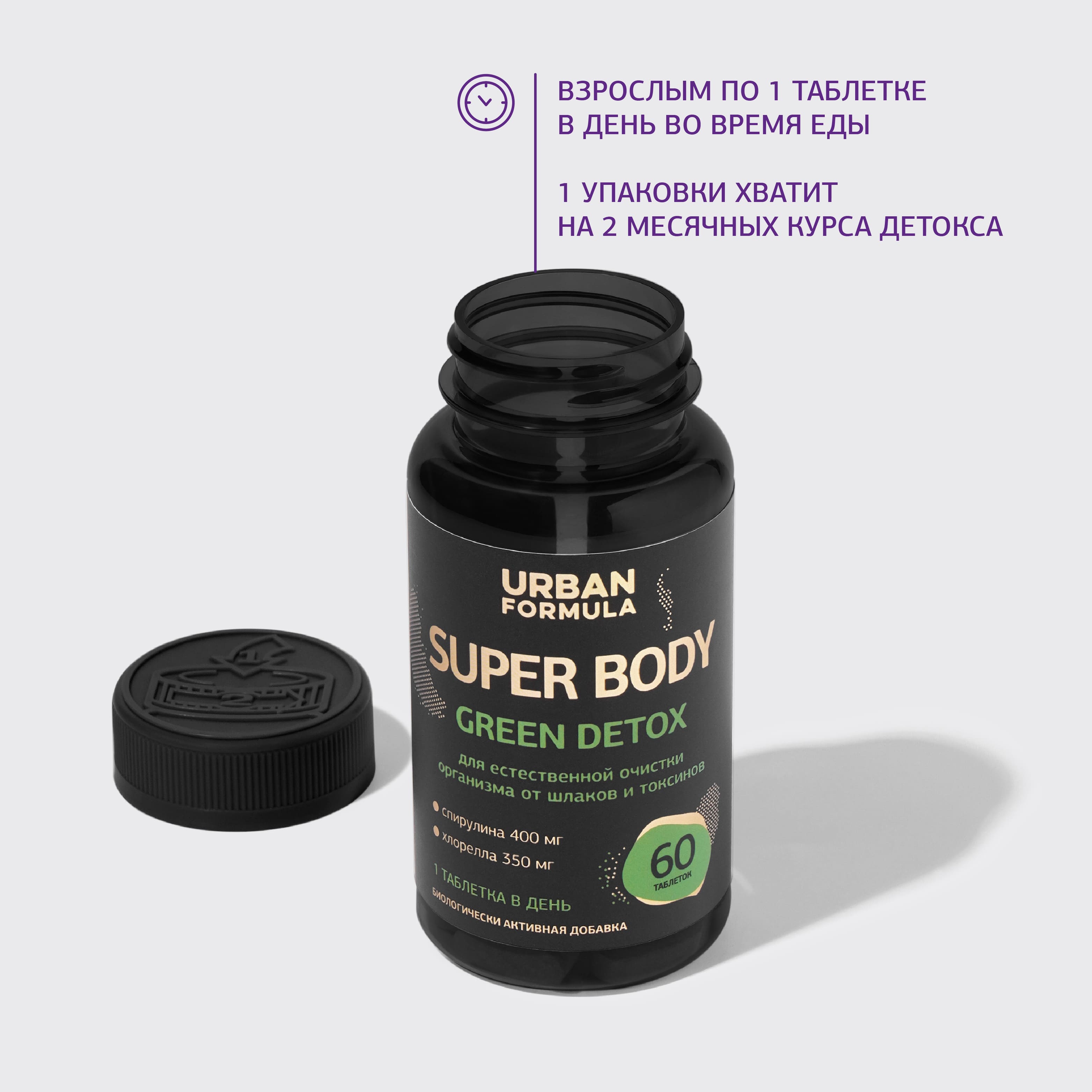 Комплексный продукт-суперфуд повышает энергичность, связывает соли тяжелых металлов, токсины и выводит их из организма благодаря высоким дозировкам полезных водорослей: