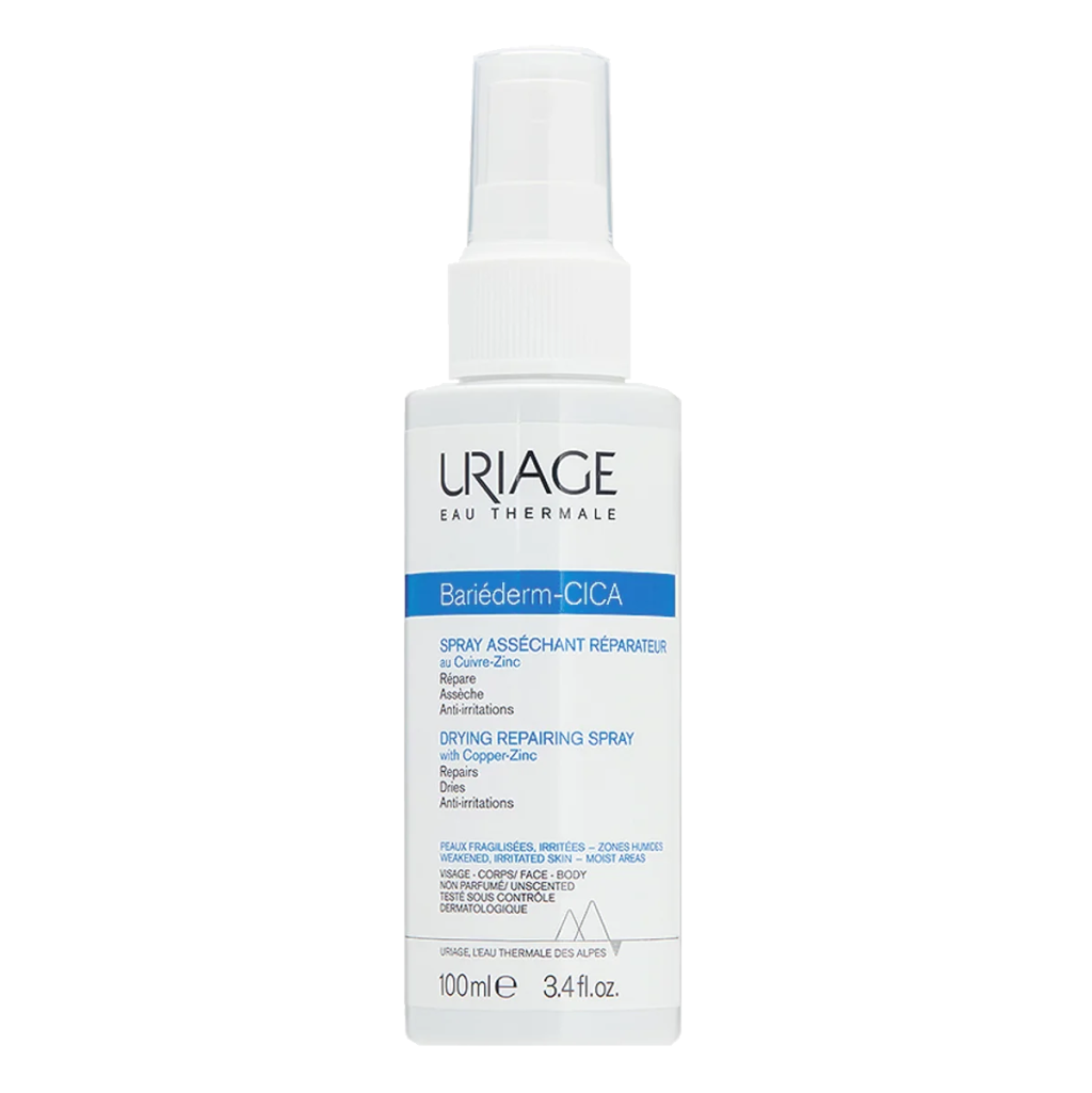 Урьяж Барьедерм Восстанавливающий цика-спрей с Cu-Zn создан для ухода за раздражённой и повреждённой кожей, подверженной риску вторичного инфицирования, в том числе при пелёночном дерматите.