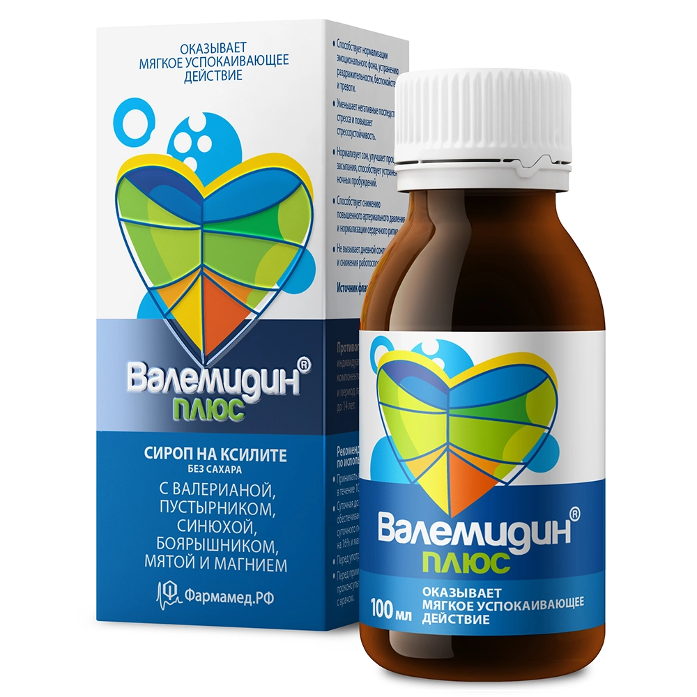 Успокоительное средство растительного происхождения. Сироп на ксилите с валерианой, пустырником, синюхой, боярышником, мятой и магнием. Способствует нормализации эмоционального фона, устранению раздражитель- ности, беспокойства и тревоги. Уменьшает негативные последствия стресса и повышает стрессоустойчивость. Нормализует сон, улучшает процесс засыпания, способствует устранению ночных пробуждений. Способствует снижению повышенного артериального давления и нормализа- ции сердечного ритма. Не вызывает дневной сонливости и снижения работоспособности.