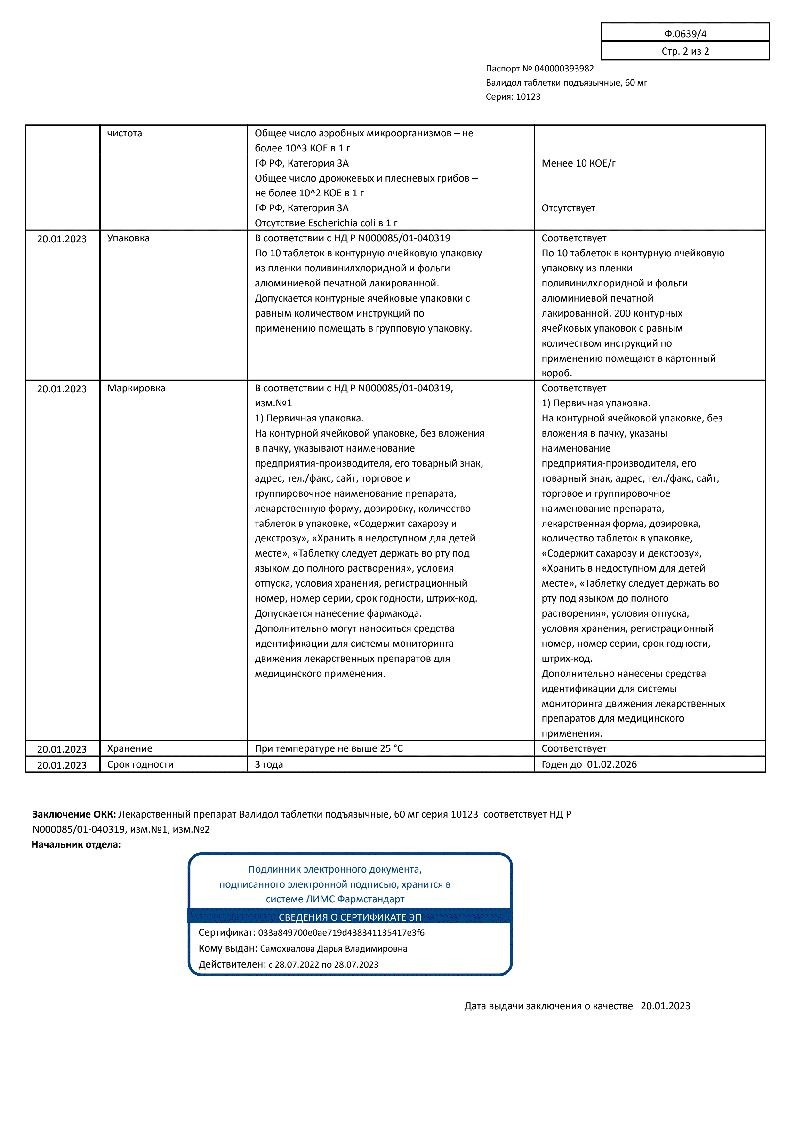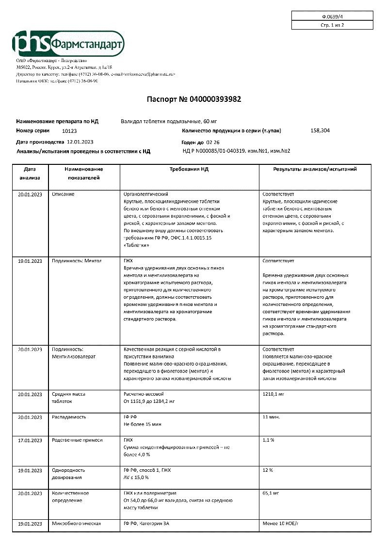 Активное вещество: левоментола раствор в ментил изовалерате - 60 мг.