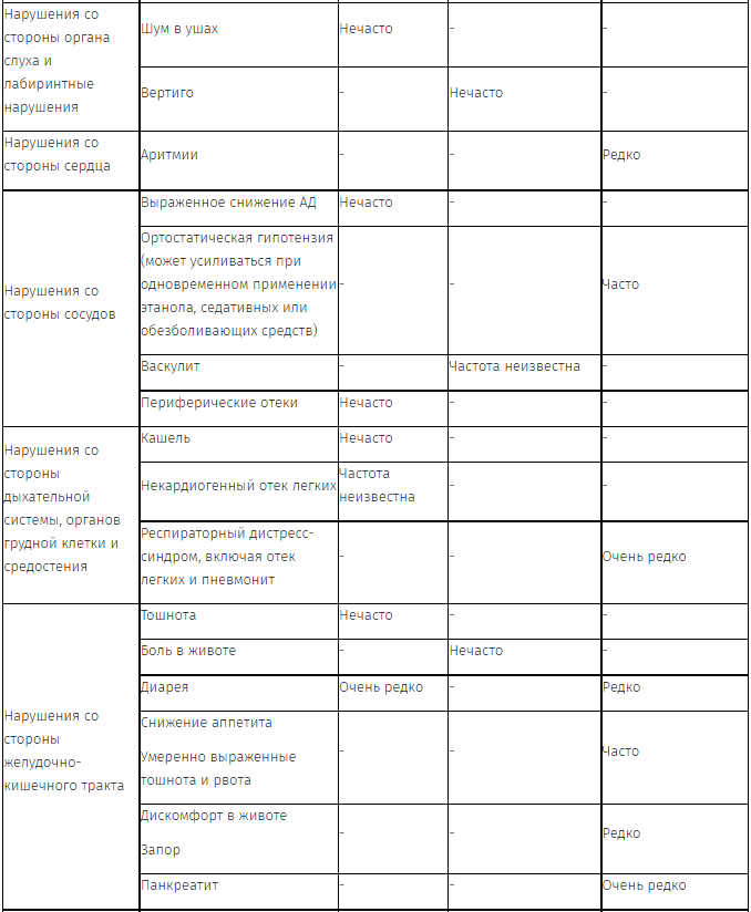 Следующие HP наблюдались при изучении клинического применения валсартана у пациентов с артериальной гипертензией независимо от их причинной связи с применением валсартана: артралгия, астения, боль в спине, диарея, головокружение, головная боль, бессонница, снижение либидо, тошнота, отеки, фарингит, ринит, синусит, инфекции верхних дыхательных путей, вирусные инфекции.