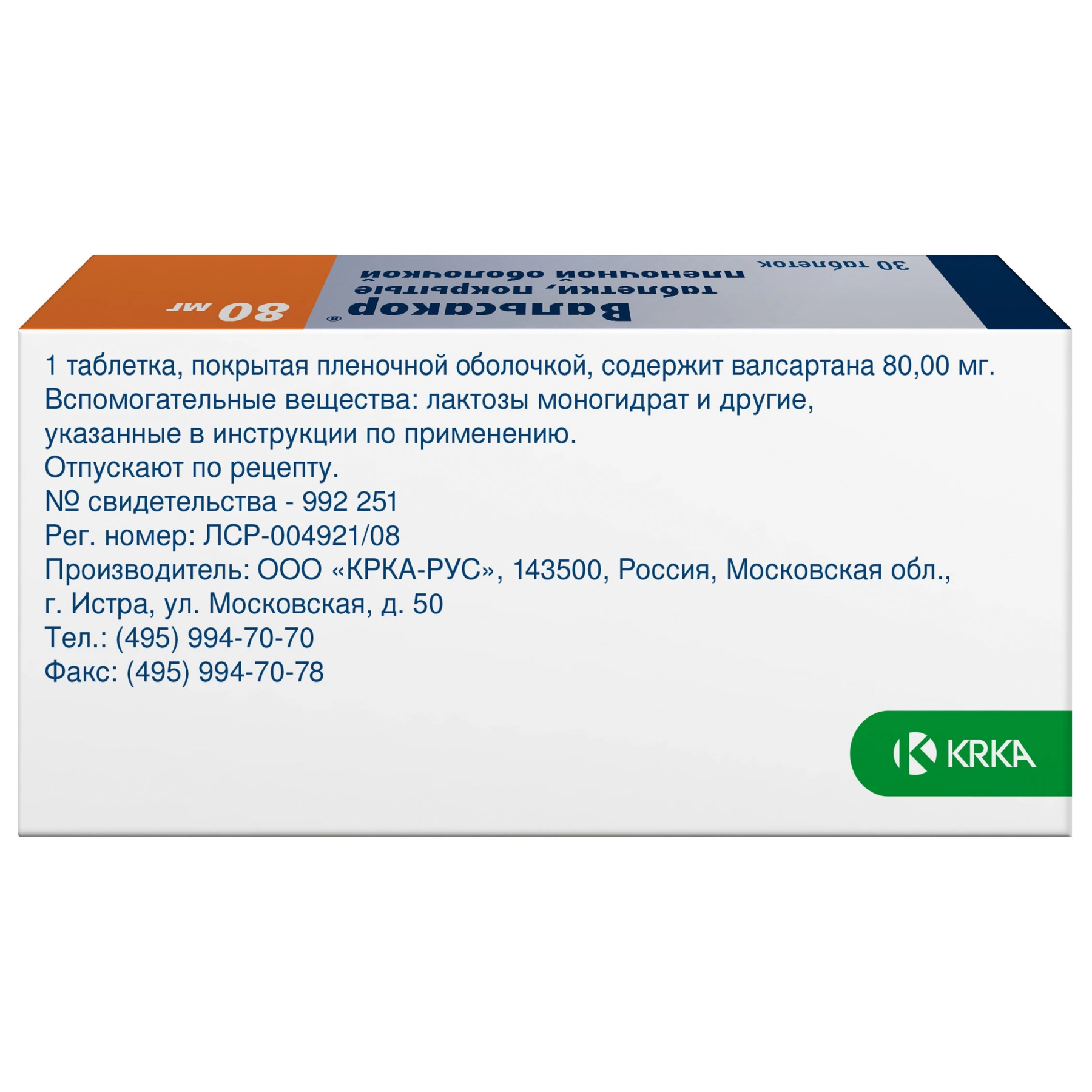 Вальсакор таб ппо 80мг №30 (арт. 10009627) Цену уточняйте по телефону в интернет аптеке в Москве и Московской области — Aptstore