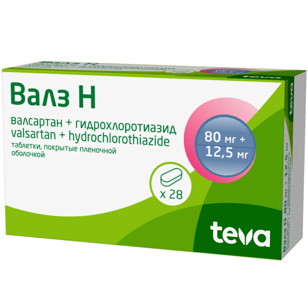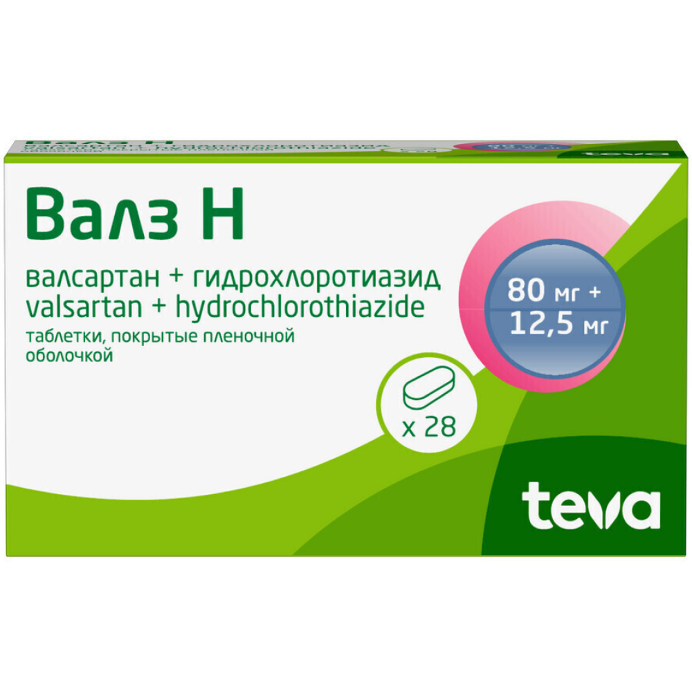 Активное вещество: валсартан 80 мг, гидрохлоротиазид 12.5 мг.