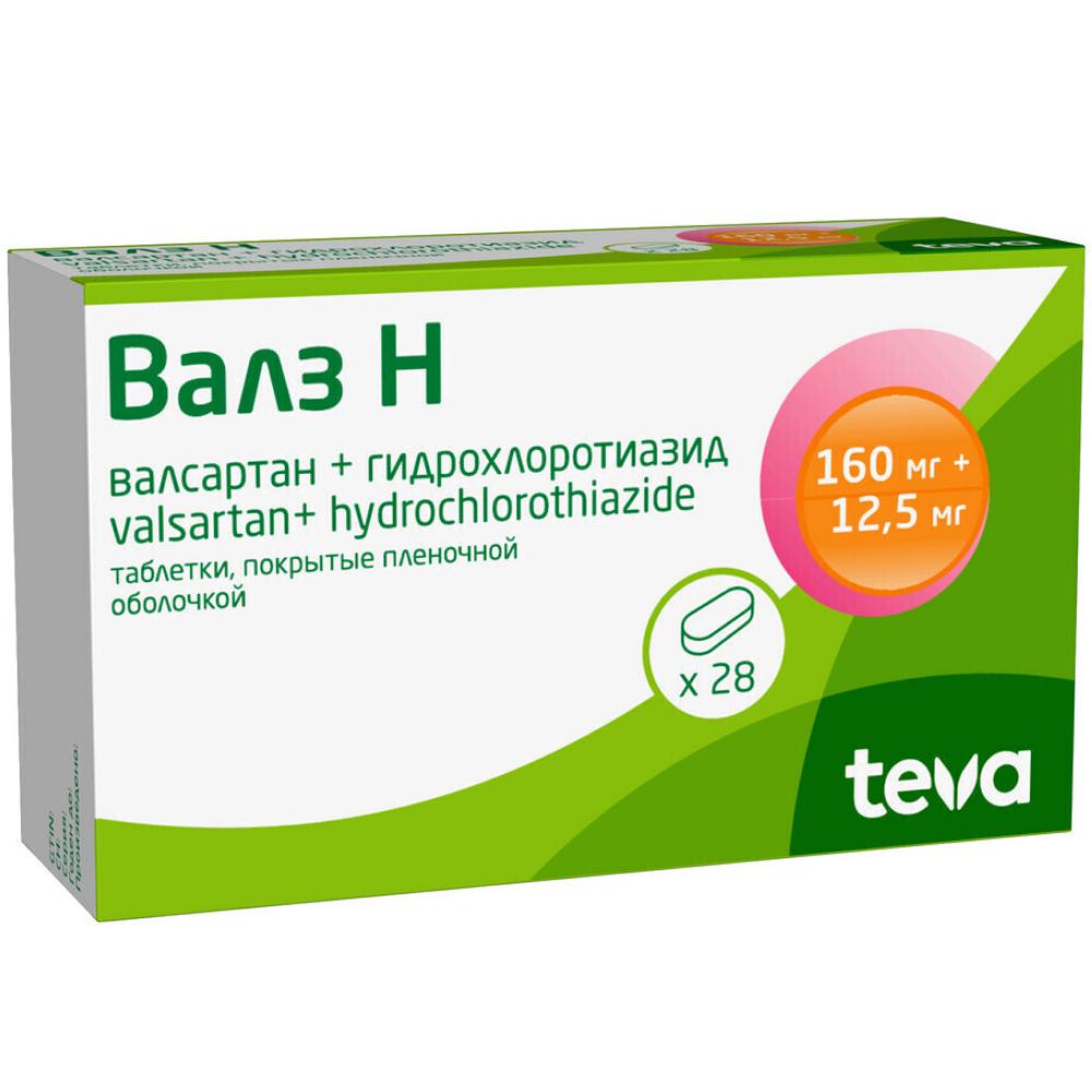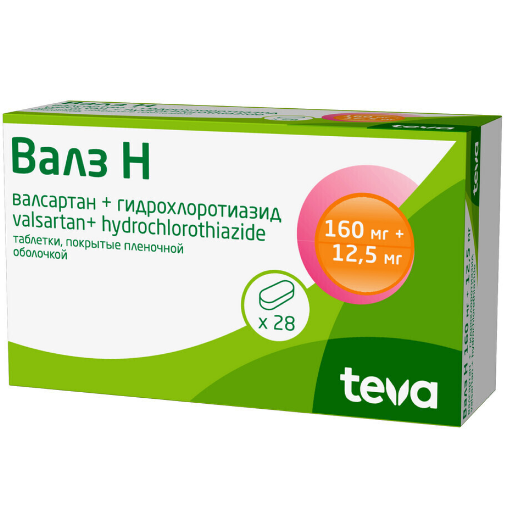 Активные вещества: валсартан 160 мг, гидрохлоротиазид 12.5 мг.