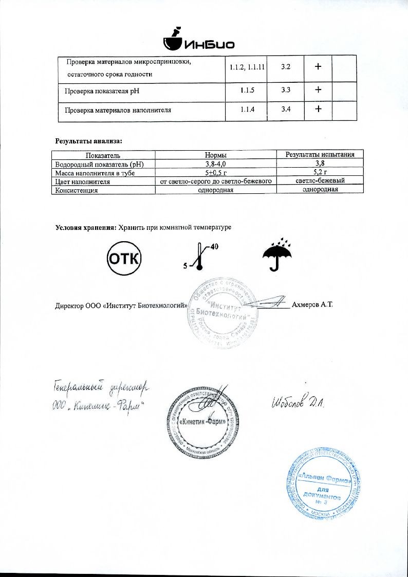 Поддержание естественных значений рН влагалища во время курса антибиотиков и/или противогрибковых препаратов по 1 тюбику в сутки.