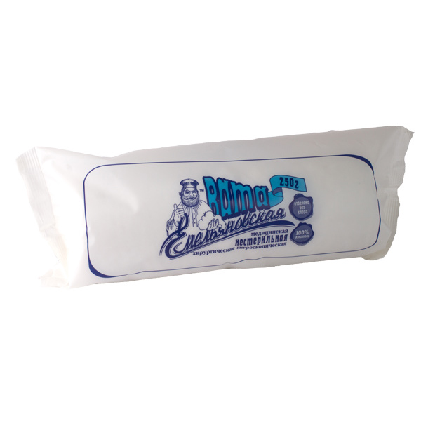 Вата медицинская хирургическая нестерильная - применяется в медицинских и гигиенических целях, производится из натурального длинноволокнистого сырья (волокна 100% хлопка высшей пробы) без добавления добавок и примесей. Вата медицинская хирургическая имеет идеально белый цвет и не содержит посторонних запахов. Вата хирургическая обладает высокой степенью прочеса - что обеспечивает отсутствие сорных примесей и включений, по своей структуре легко распределяется на параллельные слои. Обладает высокой сорбционной способностью (эффективно впитывает и удерживает влагу). Отбеливание ваты производится в соответствии требованиям ГОСТа 5556-81 (без использования хлора и его компонентов).