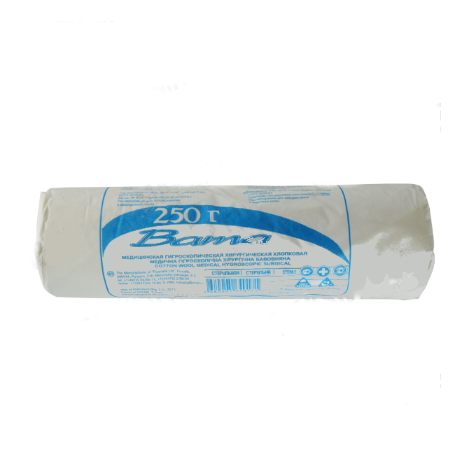 Стерильная хирургическая вата обычно применяется там, где нет возможности стерилизации, но вата будет в соприкосновении с поврежденной поверхностью кожи или или когда вата соприкасается с открытой раной.