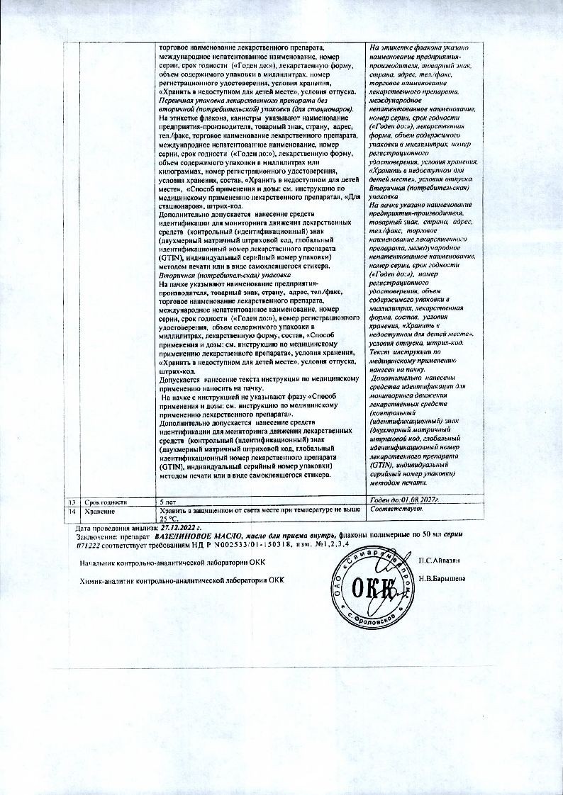 Вазелиновое масло д/внутр примен 50мл (арт. 10043821) Цену уточняйте по телефону в интернет аптеке в Москве и Московской области — Aptstore