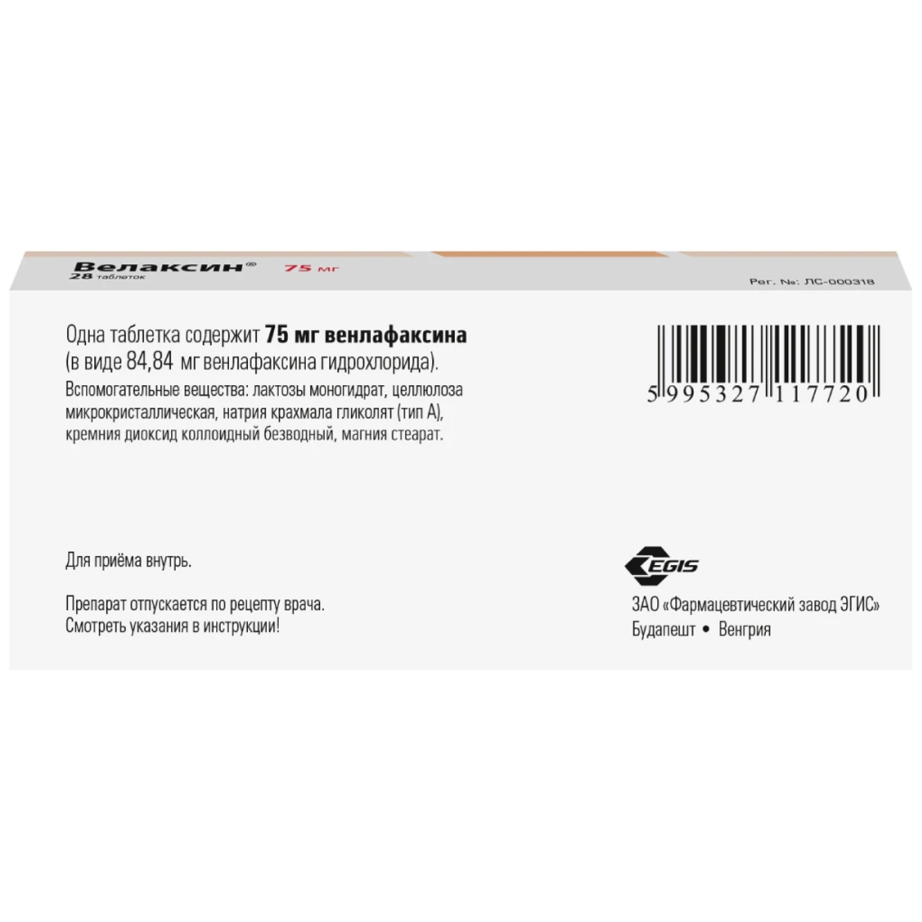 При назначении препарата Велаксин® больным с непереносимостью лактозы следует учитывать содержание лактозы (84.93 мг в каждой таблетке 37.5 мг; 169.86 мг в каждой таблетке 75 мг).