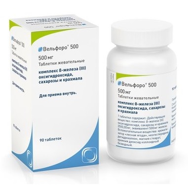 Рекомендованная начальная доза препарата Вельфоро® 500 составляет 1500 мг железа в сутки (3 таблетки). Препарат следует принимать во время еды.