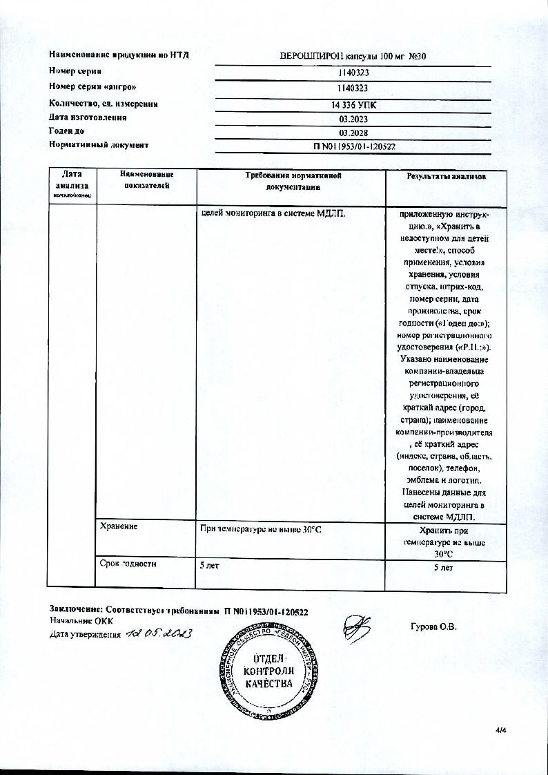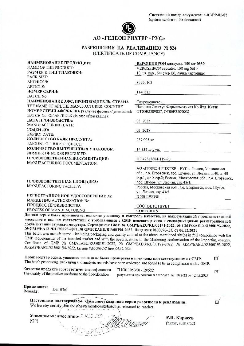 В случае непереносимости лактозы следует принимать во внимание, что каждая капсула препарата Верошпирон 50 мг содержит 127.5 мг, а капсула препарата Верошпирон 100 мг содержит 255 мг лактозы моногидрата. Данный препарат не следует принимать пациентам с такими редкими наследственными заболеваниями, как непереносимость галактозы, лактазная недостаточность или синдром глюкозо-галактозной мальабсорбции.