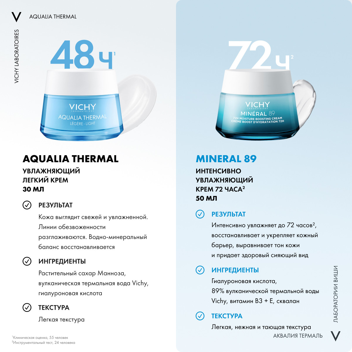 Встречайте редизайн гаммы Aqualia Thermal от Vichy – новые, еще более эффективные формулы для красоты и здоровья кожи! Легкий увлажняющий крем для нормальной кожи Vichy Aqualia Thermal на основе «изотоник-коктейля» из уникальной термальной воды и растительного сахара сокращает трансэпидермальную потерю влаги, интенсивно увлажняет и поддерживает уровень гидратации до 48 часов. Линии обезвоженности Кожа становится гладкой и свежей. Морщинки обезвоженности разглаживаются, лицо становится более юным, приобретает естественное сияние. Легкий крем Vichy Aqualia Thermal содержит 97% ингредиентов натурального происхождения, является гипоаллергенным.