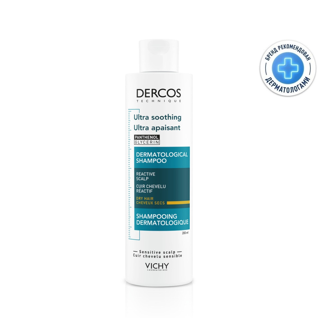 Густой шампунь на бессульфатной моющей основе Vichy Dercos Shampooing ultra apaisant sans sulfate cheveux secs с первого применения устраняет дискомфорт от зуда и жжения кожи головы на 48 часов, удаляет видимые чешуйки перхоти, делает волосы мягкими, шелковистыми и сияющими. При регулярном использовании Виши Деркос Шампунь успокаивающий без сульфатов для сухих волос восстанавливает естественную липидную защиту эпидермиса, благодаря чему всего через три недели реактивность кожи снижается на 60%. Масла абрикоса и сладкого миндаля препятствуют образованию перхоти, питают и укрепляют волосы.