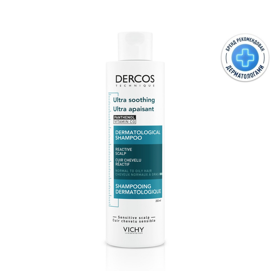 Формула шампуня на мягкой моющей основе Vichy Dercos Shampooing ultra apaisant sans sulfate cheveux normaux à gras не содержит сульфатов, поэтому он не нарушает липидную защиту и сохраняет естественный уровень рН эпидермиса. С первого применения Виши Деркос Шампунь успокаивающий без сульфатов дарит ощущение комфорта на 48 часов, облегчает расчесывание и укладку. При регулярном использовании снижается реактивность кожи, уменьшается риск появления перхоти, сокращается выпадение и ускоряется рост волос.